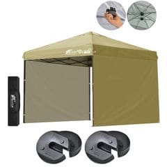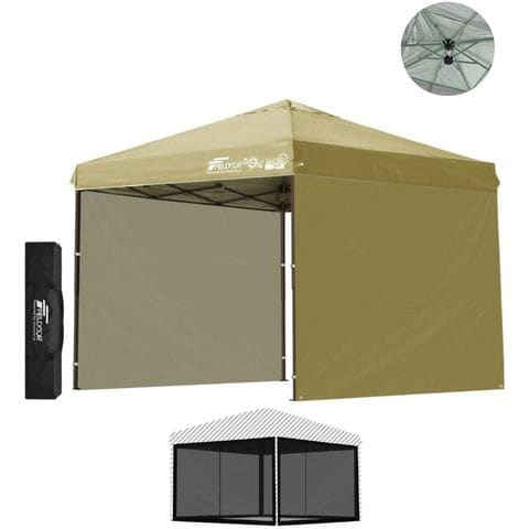 FIELDOOR ワンタッチタープテント 2.5m (標準:サンド/スチール/強化版サイドフレーム/4点脚ロック/バグガード/サイドシート2枚付) テント タープ ワンタッチテント ワンタッチタープ UV加工 撥水 ベンチレーション 日よけ キャンプ 送料無料