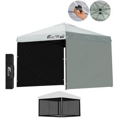 FIELDOOR ワンタッチタープテント 2.5m (遮光遮熱PU:グレー/スチール/強化版サイドフレーム/4点脚ロック/バグガード/サイドシート2枚付) テント タープ ワンタッチテント ワンタッチタープ UV加工 撥水 ベンチレーション 日よけ キャンプ 送料無料