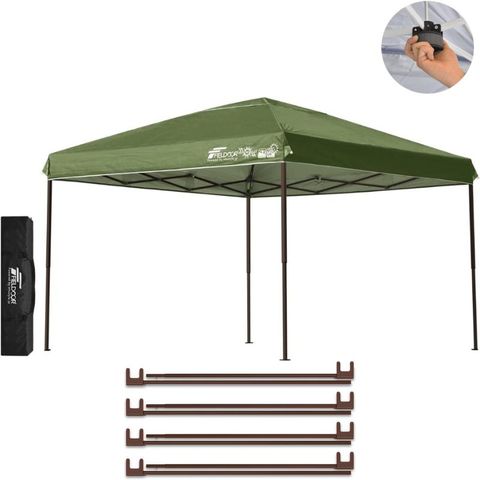 FIELDOOR ワンタッチタープテント 3m (標準:カーキ/スチール/センターロック/強化サポート) テント タープ ワンタッチ ワンタッチテント ワンタッチタープ UV加工 撥水 ベンチレーション 収納バッグ付 日よけ キャンプ バーベキュー 送料無料