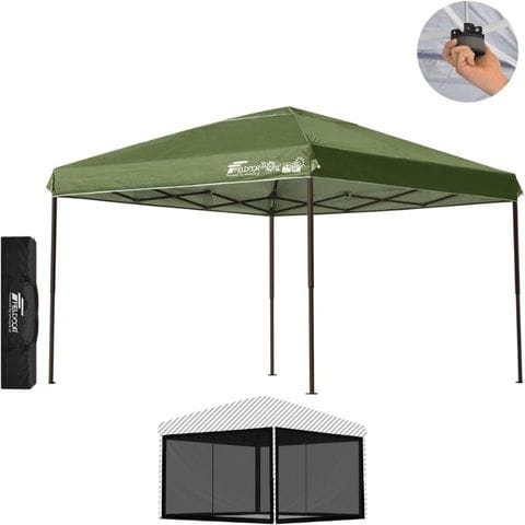 FIELDOOR ワンタッチタープテント 3m (標準:カーキ/スチール/センターロック/バグガード) テント タープ ワンタッチ ワンタッチテント ワンタッチタープ UV加工 撥水 ベンチレーション 収納バッグ付 日よけ キャンプ バーベキュー 送料無料
