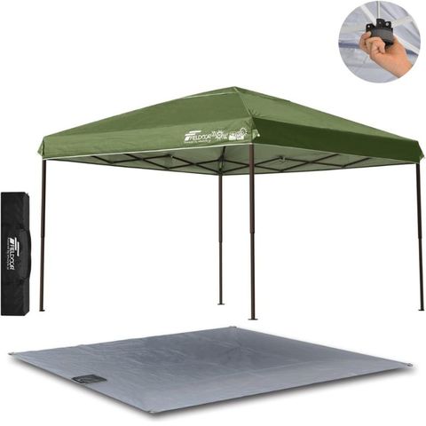 FIELDOOR ワンタッチタープテント 3m (標準:カーキ/スチール/センターロック/グランドシート) テント タープ ワンタッチ ワンタッチテント ワンタッチタープ UV加工 撥水 ベンチレーション 収納バッグ付 日よけ キャンプ バーベキュー 送料無料