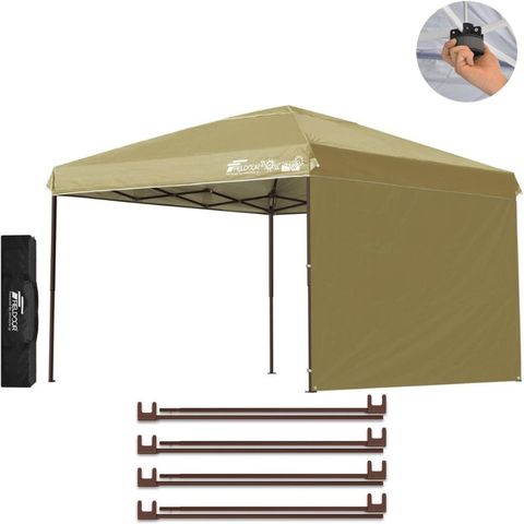 FIELDOOR ワンタッチタープテント 3m (標準:サンド/スチール/センターロック/強化サポート/サイドシート1枚付) テント タープ ワンタッチ ワンタッチテント ワンタッチタープ UV加工 撥水 ベンチレーション 収納バッグ付 日よけ キャンプ バーベキュー 送料無料