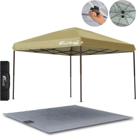FIELDOOR ワンタッチタープテント 3m (標準:サンド/スチール/強化版サイドフレーム/センターロック/グランドシート) テント タープ ワンタッチ ワンタッチテント ワンタッチタープ UV加工 撥水 ベンチレーション 収納バッグ付 日よけ キャンプ 送料無料