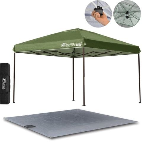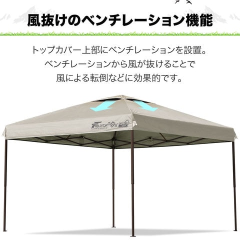 FIELDOOR ワンタッチタープテント 3m (標準:カーキ/スチール/強化版サイドフレーム/センターロック/グランドシート) テント タープ ワンタッチ ワンタッチテント ワンタッチタープ UV加工 撥水 ベンチレーション 収納バッグ付 日よけ キャンプ 送料無料