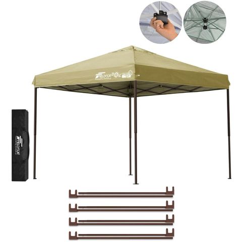 FIELDOOR ワンタッチタープテント 2.5m (標準:サンド/スチール/強化版サイドフレーム/センターロック/強化サポート) テント タープ ワンタッチ ワンタッチテント ワンタッチタープ UV加工 撥水 ベンチレーション 収納バッグ付 日よけ キャンプ 送料無料