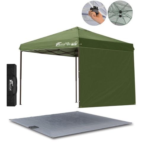 FIELDOOR ワンタッチタープテント 2.5m (標準:カーキ/スチール/強化版サイドフレーム/センターロック/グランドシート/サイドシート1枚付) テント タープ ワンタッチテント ワンタッチタープ UV加工 撥水 ベンチレーション 日よけ キャンプ 送料無料