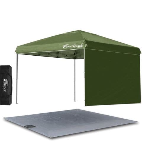 FIELDOOR ワンタッチタープテント 3m (標準:カーキ/アルミ/4点脚ロック/グランドシート/サイドシート1枚付) 軽量 テント タープ ワンタッチ ワンタッチテント ワンタッチタープ UV加工 撥水 ベンチレーション 収納バッグ付 日よけ キャンプ 送料無料