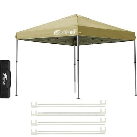 FIELDOOR ワンタッチタープテント 2.5m (標準:サンド/アルミ/4点脚ロック/フレーム強化サポート) 軽量 テント タープ ワンタッチ ワンタッチテント ワンタッチタープ UV加工 撥水 ベンチレーション 収納バッグ付 日よけ キャンプ バーベキュー 送料無料