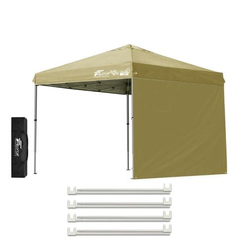 FIELDOOR ワンタッチタープテント 2.5m (標準:サンド/アルミ/4点脚ロック/フレーム強化サポート/サイドシート1枚付) 軽量 テント タープ ワンタッチ ワンタッチテント ワンタッチタープ UV加工 撥水 ベンチレーション 収納バッグ付 日よけ キャンプ 送料無料
