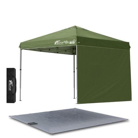 FIELDOOR ワンタッチタープテント 2.5m (標準:カーキ/アルミ/4点脚ロック/専用グランドシート/サイドシート1枚付) 軽量 テント タープ ワンタッチ ワンタッチテント ワンタッチタープ UV加工 撥水 ベンチレーション 収納バッグ付 日よけ キャンプ 送料無料