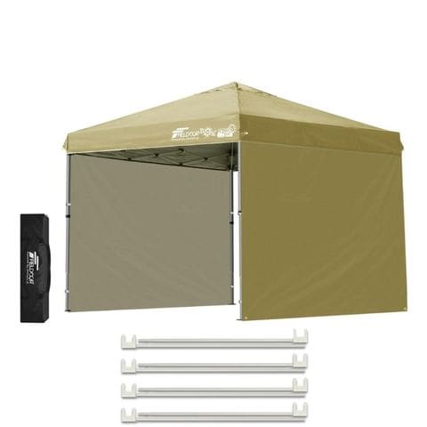 FIELDOOR ワンタッチタープテント 2.5m (標準:サンド/アルミ/4点脚ロック/フレーム強化サポート/サイドシート2枚付) 軽量 テント タープ ワンタッチ ワンタッチテント ワンタッチタープ UV加工 撥水 ベンチレーション 収納バッグ付 日よけ キャンプ 送料無料