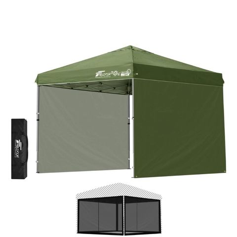 FIELDOOR ワンタッチタープテント 2.5m (標準:カーキ/アルミ/4点脚ロック/バグガードスクリーン/サイドシート2枚付) 軽量 テント タープ ワンタッチ ワンタッチテント ワンタッチタープ UV加工 撥水 ベンチレーション 収納バッグ付 日よけ キャンプ 送料無料