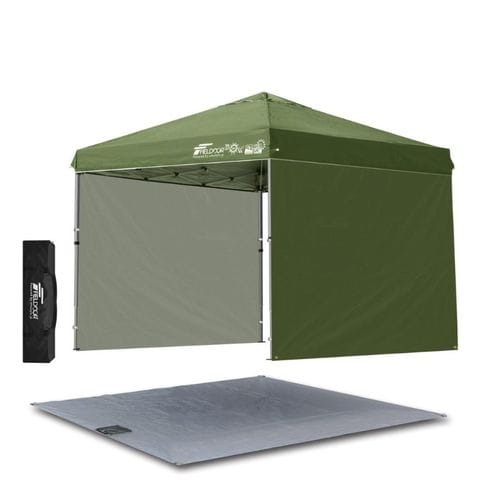 FIELDOOR ワンタッチタープテント 2.5m (標準:カーキ/アルミ/4点脚ロック/専用グランドシート/サイドシート2枚付) 軽量 テント タープ ワンタッチ ワンタッチテント ワンタッチタープ UV加工 撥水 ベンチレーション 収納バッグ付 日よけ キャンプ 送料無料