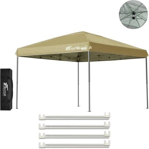 FIELDOOR ワンタッチタープテント 3m (標準:サンド/アルミ/強化版サイドフレーム/4点脚ロック/強化サポート) 軽量 テント タープ ワンタッチ ワンタッチテント ワンタッチタープ UV加工 撥水 ベンチレーション 収納バッグ付 日よけ キャンプ 送料無料