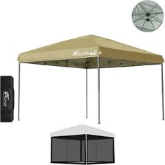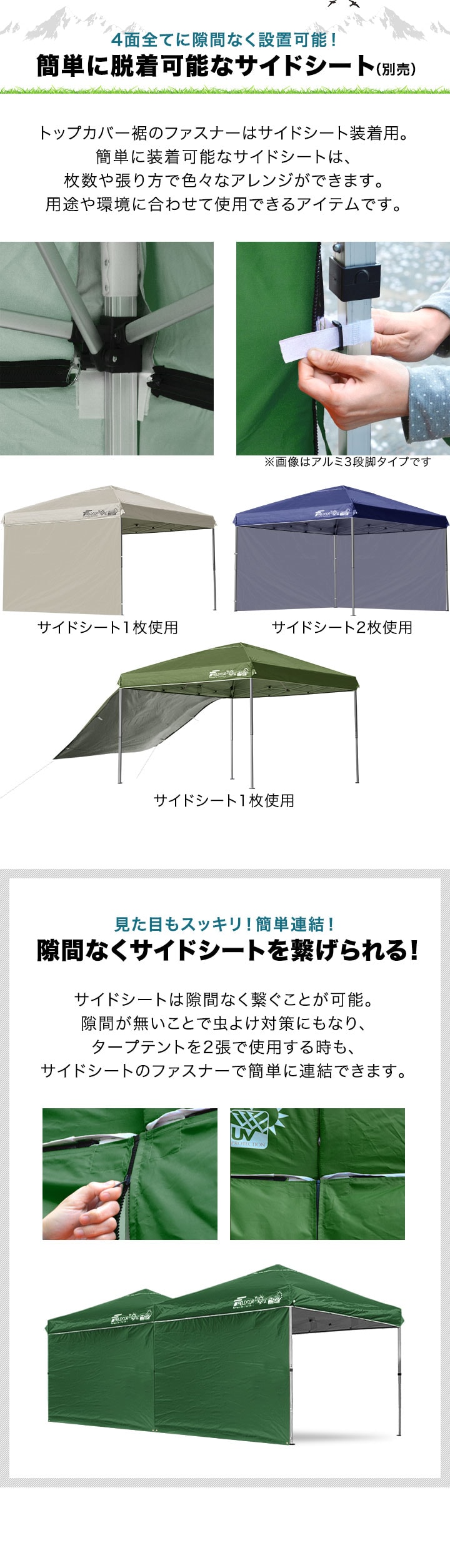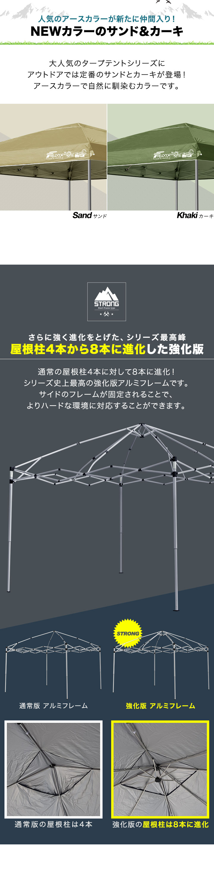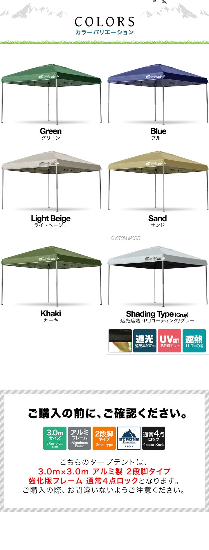 FIELDOOR ワンタッチタープテント 3m (標準:サンド/アルミ/強化版サイドフレーム/4点脚ロック/グランドシート) 軽量 テント タープ ワンタッチ ワンタッチテント ワンタッチタープ UV加工 撥水 ベンチレーション 収納バッグ付 日よけ キャンプ 送料無料