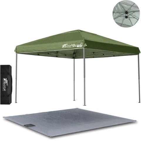 FIELDOOR ワンタッチタープテント 3m (標準:カーキ/アルミ/強化版サイドフレーム/4点脚ロック/グランドシート) 軽量 テント タープ ワンタッチ ワンタッチテント ワンタッチタープ UV加工 撥水 ベンチレーション 収納バッグ付 日よけ キャンプ 送料無料