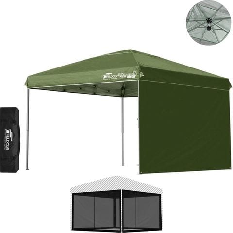 FIELDOOR ワンタッチタープテント 3m (標準:カーキ/アルミ/強化版サイドフレーム/4点脚ロック/バグガード/サイドシート1枚付) 軽量 テント タープ ワンタッチテント ワンタッチタープ UV加工 撥水 ベンチレーション 収納バッグ付 日よけ キャンプ 送料無料