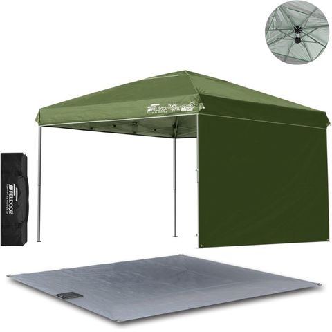 FIELDOOR ワンタッチタープテント 3m (標準:カーキ/アルミ/強化版サイドフレーム/4点脚ロック/グランドシート/サイドシート1枚付) 軽量 テント タープ ワンタッチテント ワンタッチタープ UV加工 撥水 ベンチレーション 収納バッグ付 日よけ キャンプ 送料無料