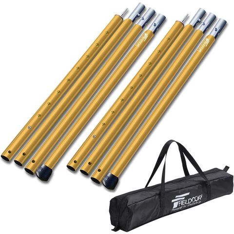 FIELDOOR テントポール アルミ製テントポール (ゴールド/ポール2本&収納バッグセット) 2本セット 直径 32mm 高さ120~280cm 8段階 高さ調整 アルミ サブポール タープポール キャノピー 用 ポール 分割式 ワンタッチテント タープ タープテント ドームテント 送料無料