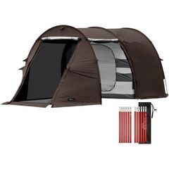 FIELDOOR テント 大型 (ライトベージュ/本体&テントポール2組セット) ドームテント 480cm×260cm 2ルームテント 3人~4人用 トンネルテント 480 耐水 遮熱 UVカット シェルター キャンプテント ツールームテント インナーテント付き 前室 日よけ キャンプ 送料無料
