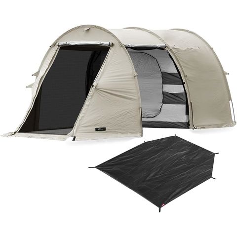 FIELDOOR テント 大型 (ライトベージュ/本体&専用グランドシートセット) ドームテント 480cm×260cm 2ルームテント 3人~4人用 トンネルテント 480 耐水 遮熱 UVカット シェルター キャンプテント ツールームテント インナーテント付き 前室 日よけ キャンプ 送料無料のレビュー
