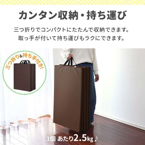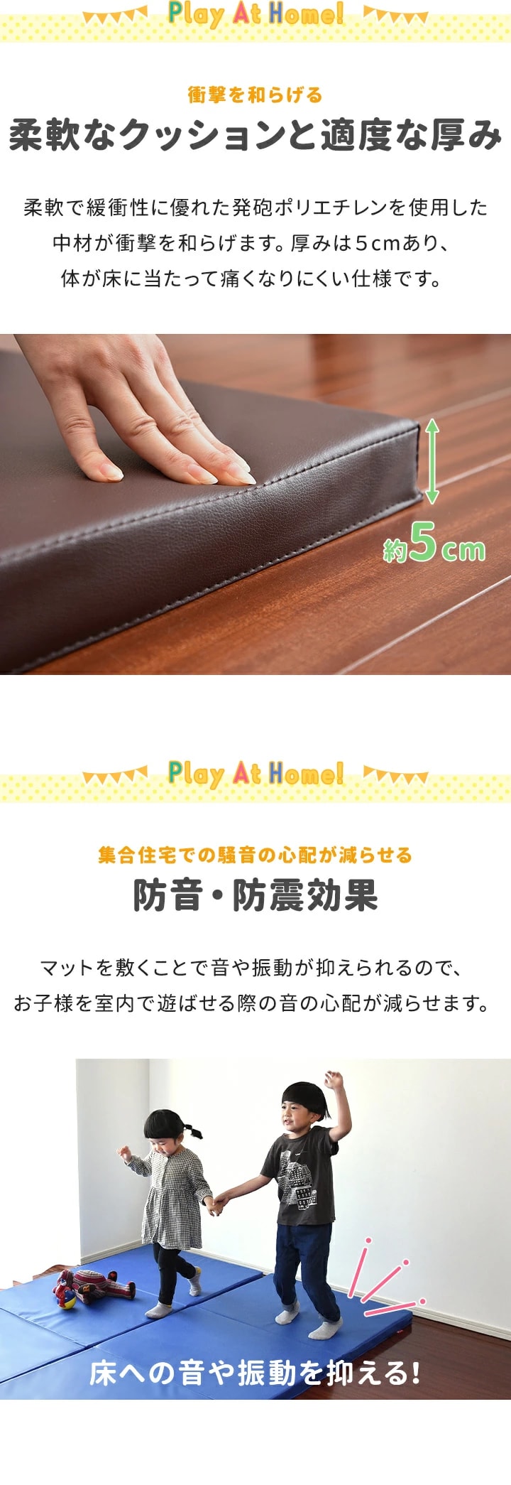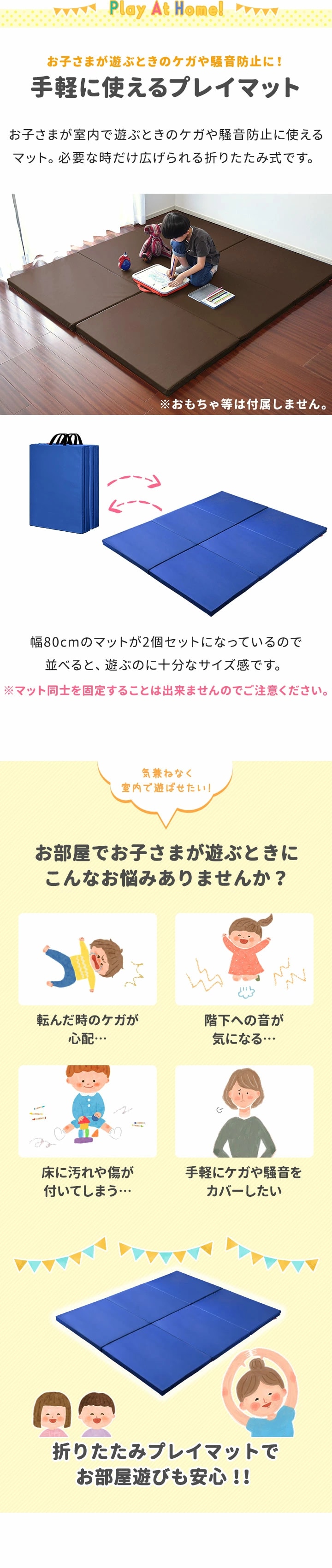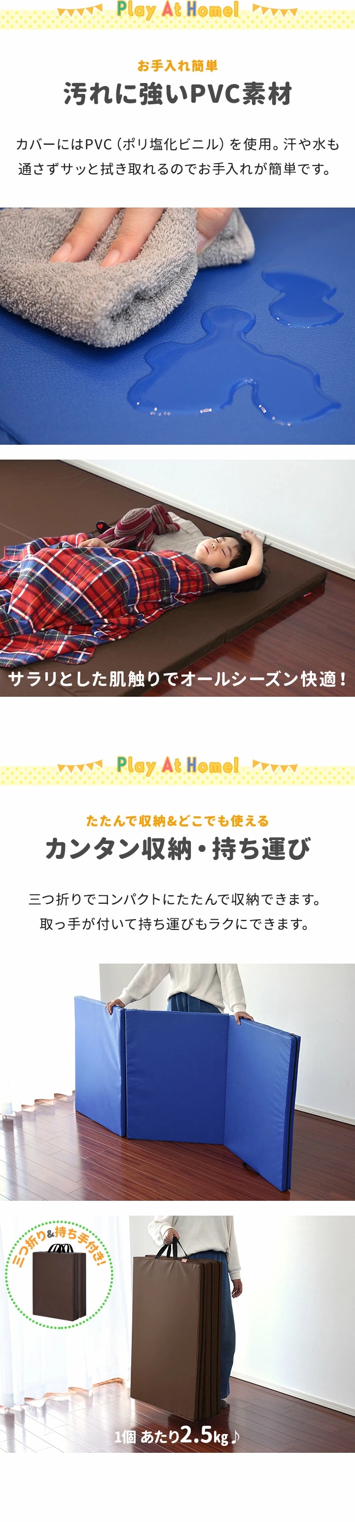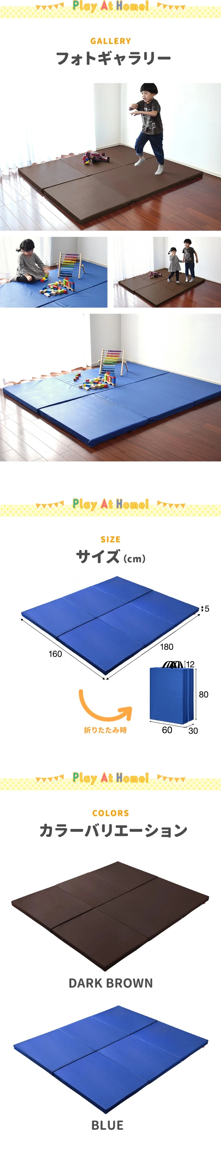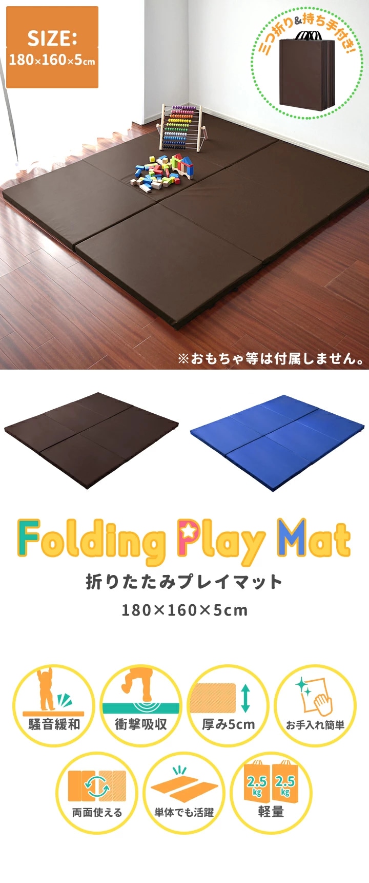 折りたたみプレイマット 大判 三つ折り (ダークブラウン) 180cm×160cm 厚さ5cm 厚手 ベビーマット プレイサークル クッションマット ベビー キッズ 送料無料