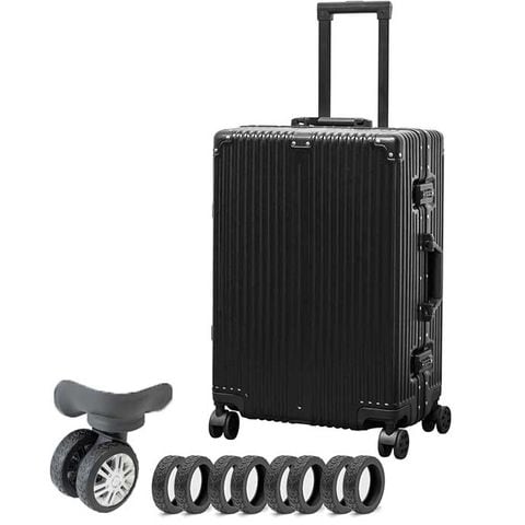 スーツケース Mサイズ 61L (ブラック/キャスターカバー 8個セット) 中型 キャリーケース TSAロック 頑丈 アルミフレームタイプ ダブルキャスター 8輪 軽量 4泊~6泊用 キャリーバッグ ダイヤルロック 軽量 金属フレーム&ポリカーボネート 海外旅行 出張 FIELDOOR 送料無料