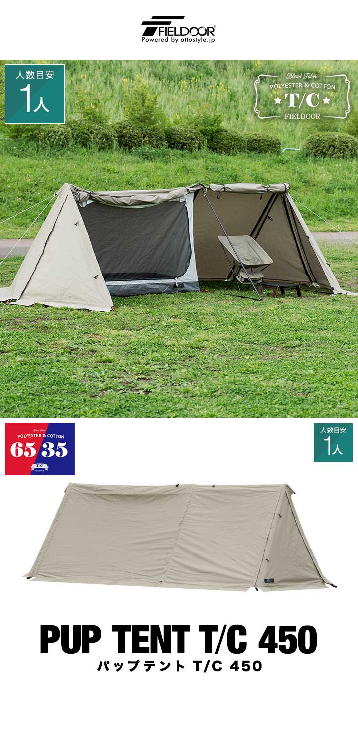 FIELDOOR パップテントT/C 450 (A2:本体&テントポール) ワイド 4.5m 難燃ポリコットン ツールームテント 前室・インナーテント付 1人用 ソロテント 三角テント 軍幕 テント A型テント 二又ポール 二又テント ドームテント ソロキャンプ アウトドア 送料無料