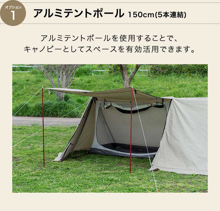 | 材質: ・フライシート : ポリエステル65%、コットン35% ・インナーテント: ポリエステル ・グラウンド : ポリエステル ・ポール : スチール ・ペグ : 超々ジュラルミン (A7075系) |