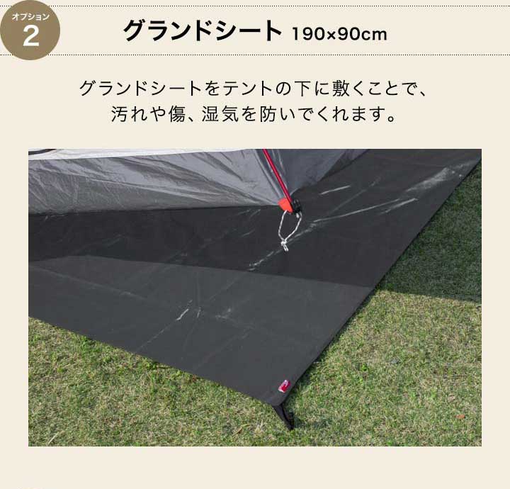 | 材質: ・フライシート : ポリエステル65%、コットン35% ・インナーテント: ポリエステル ・グラウンド : ポリエステル ・ポール : スチール ・ペグ : 超々ジュラルミン (A7075系) |