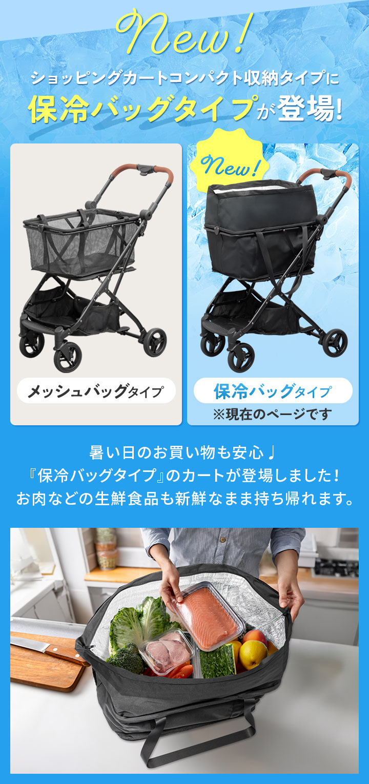 ショッピングカート ワンタッチ 折りたたみ (保冷バッグタイプ/カート本体のみ) 軽量 おしゃれ 4輪 買い物カート ブレーキ付 レジカゴ 取り外し 2段 大容量 メッシュ 自立 マイバッグ エコバッグ スーパー 高齢者 買い物かご カート キャリーカート コンパクト収納タイプ 送料無料