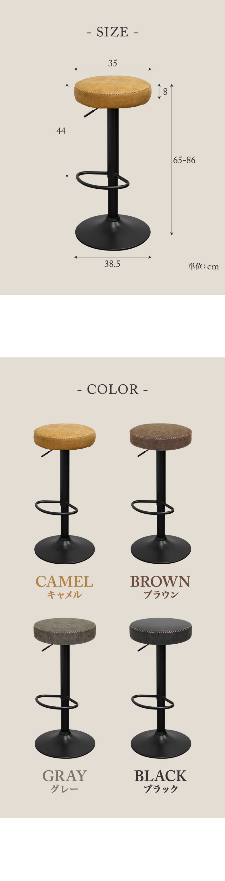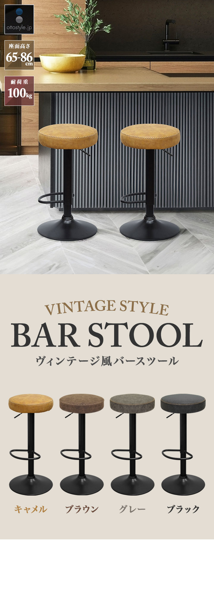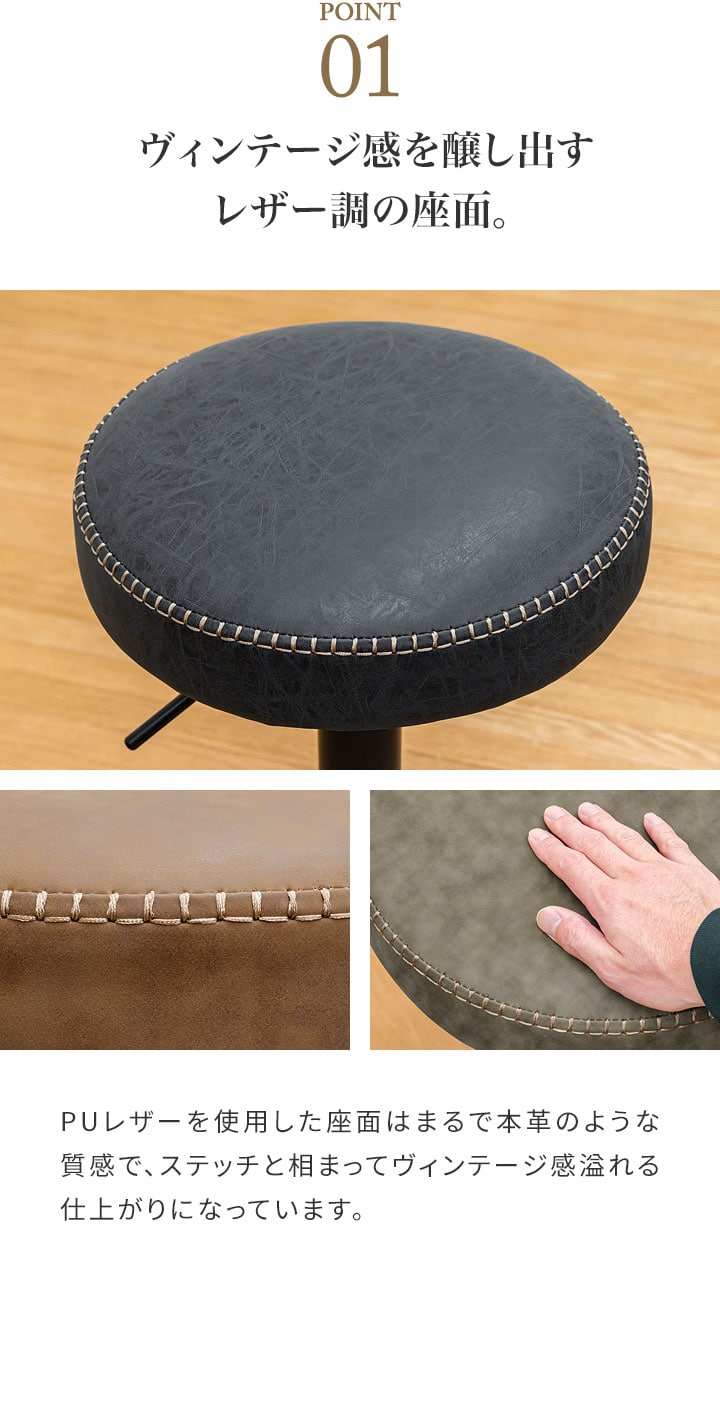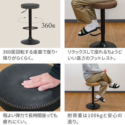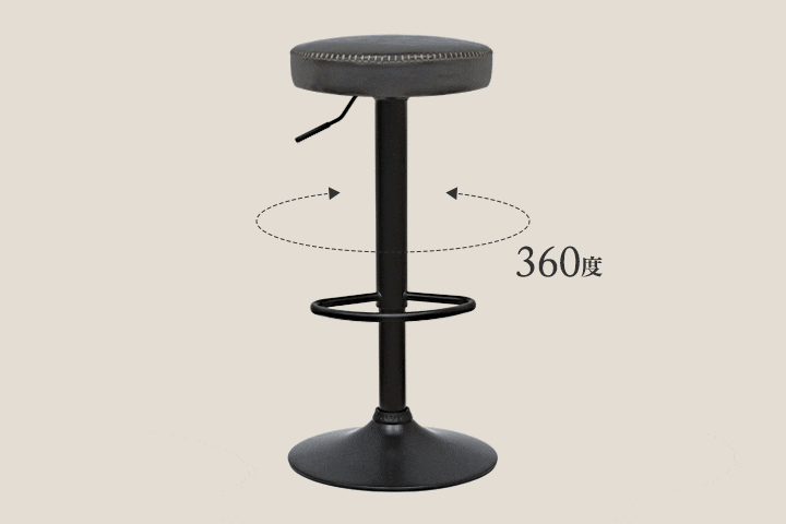 カウンターチェア バーチェア (1脚単品/ブラック/艶なし) PUレザー バースツール ハイスツール おしゃれ 椅子 スツール 丸椅子 座面高 65cm~86cm 店舗 レトロ ヴィンテージ 西海岸 回転式 昇降式 チェア カフェ風 送料無料