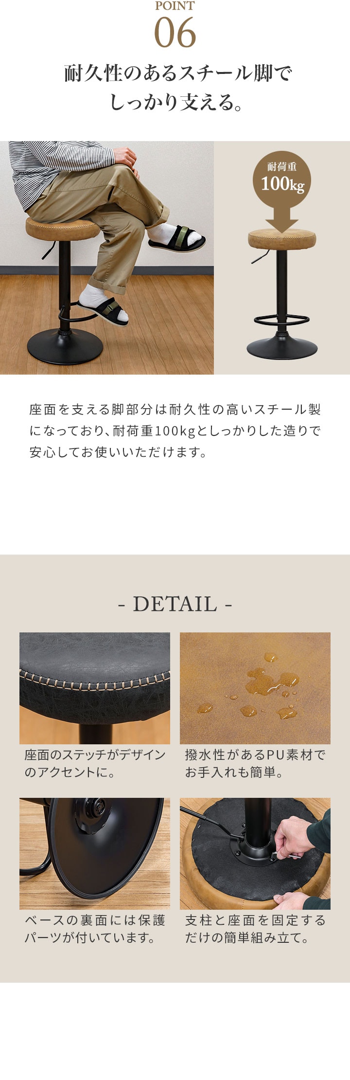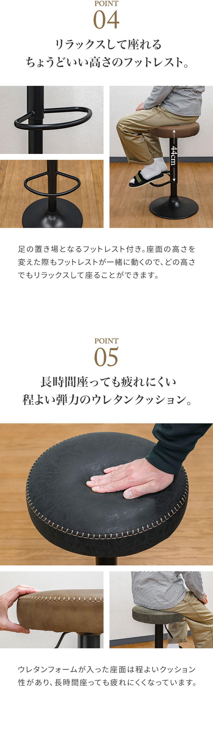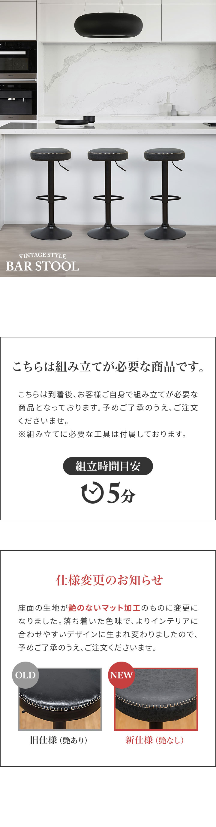 カウンターチェア バーチェア (1脚単品/ブラック/艶なし) PUレザー バースツール ハイスツール おしゃれ 椅子 スツール 丸椅子 座面高 65cm~86cm 店舗 レトロ ヴィンテージ 西海岸 回転式 昇降式 チェア カフェ風 送料無料