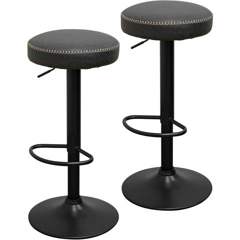 カウンターチェア バーチェア (2脚セット/ブラック/艶なし) PUレザー バースツール ハイスツール おしゃれ 椅子 スツール 丸椅子 座面高 65cm~86cm 店舗 レトロ ヴィンテージ 西海岸 回転式 昇降式 チェア カフェ風 送料無料