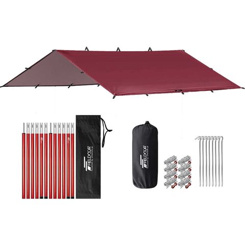 FIELDOOR タープテント スクエアタープ 280cm×280cm (標準:ボルドー/本体&6連結180cmポール2本付) 日よけ 日除け 正方形 四角 UVカット 撥水 高耐水 大型 2人?4人用 簡易テント サンシェード オーニング ヘキサタープ タープ テント アウトドア 送料無料