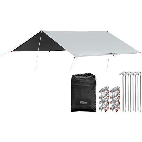 FIELDOOR レクタタープ 遮熱 (グレー:遮光高耐水/タープ本体のみ:ポールなし) 遮光 435cm×500cm 4~6人用 タープテント 日よけ UVカット 高耐水 大型 テントポール サンシェード オーニング ヘキサタープ 長方形 四角 タープ アウトドア BBQ キャンプ 送料無料
