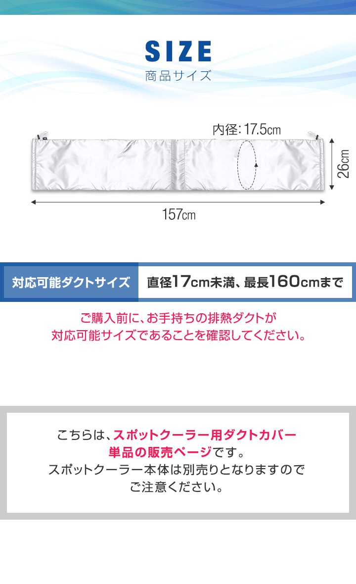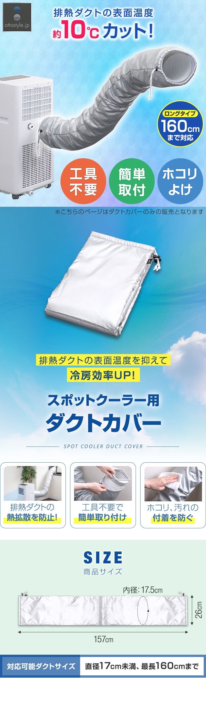 スポットクーラー用 ダクトカバー スポットエアコン 熱拡散抑制 簡単 取り付け お手入れ ホコリ除け 汚れ防止 ダクト カバー あとづけ 付属品 追加購入 オプション ※ダクトカバのみ本体別売 送料無料
