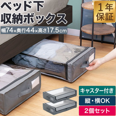 ベッド下収納 キャスター付き 2個組 収納ケース 引き出し 薄型 高さ17.5cm 幅44cm×奥行74cm 収納ボックス 衣装ケース ソファ下 漫画 コミック 省スペース コンパクト 押入れ 大容量 隙間収納 収納 CD DVD シンプル おしゃれ 送料無料
