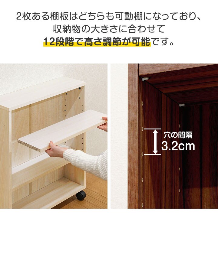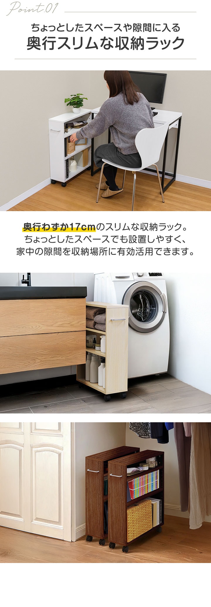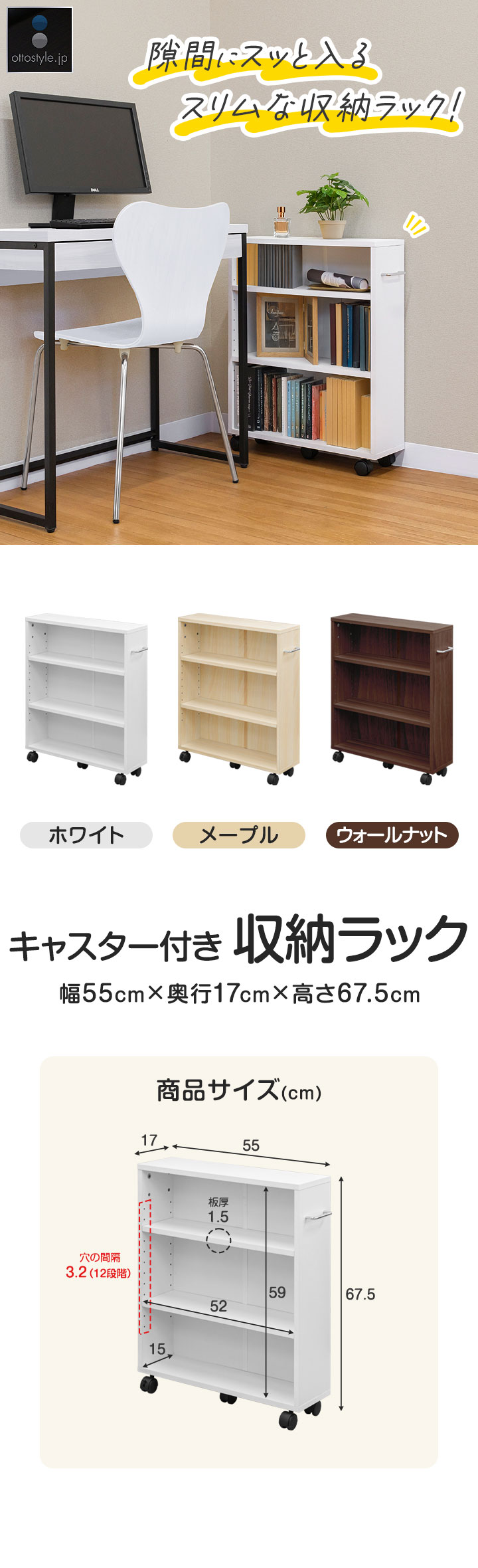 本棚 スリム キャスター (ウォールナット) 収納ラック 隙間収納 3段 幅55cm×奥行17cm×高さ67.5cm ロータイプ ワゴン 漫画 コミック 文庫本 省スペース 薄型 コンパクト 押入れ クローゼット CD DVD 収納 可動棚 木目調 シンプル 北欧 おしゃれ 送料無料
