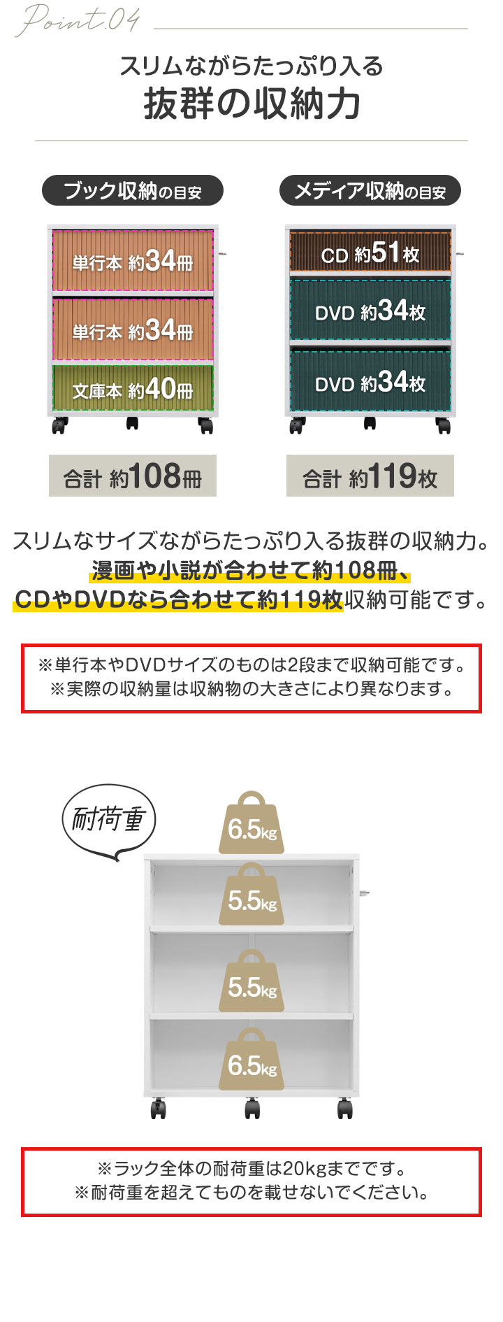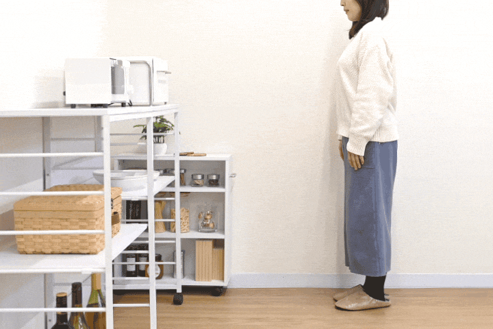 | 耐荷重: 天板:6.5kg 2段目:5.5kg 3段目:5.5kg 4段目:6.5kg ※全体耐荷重:20kg |