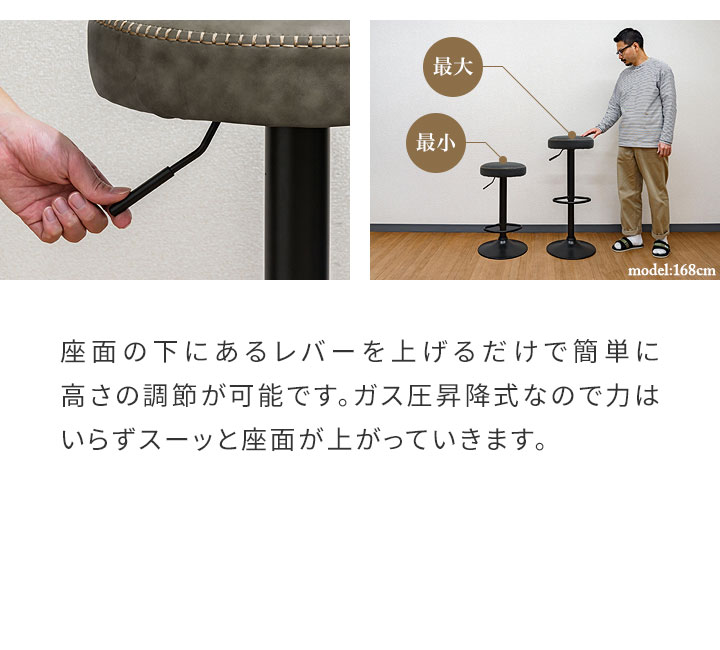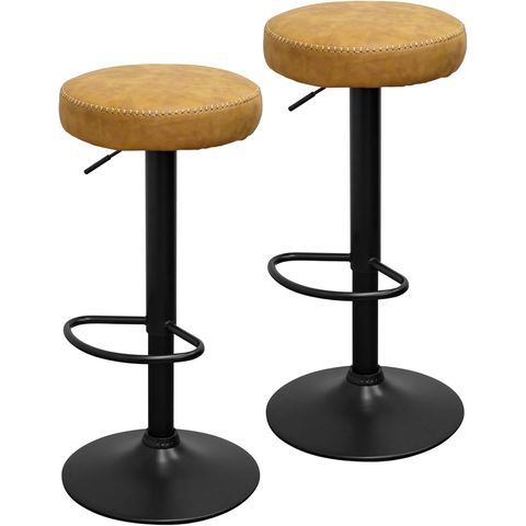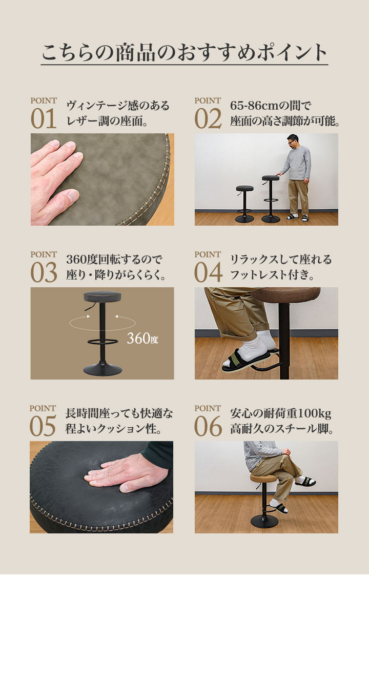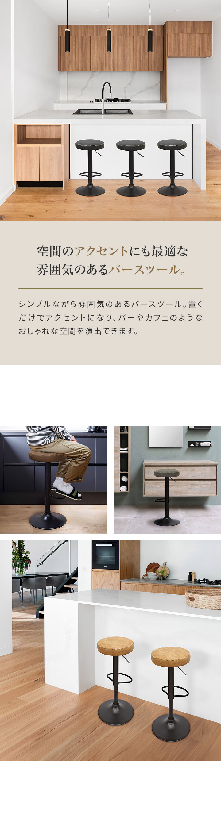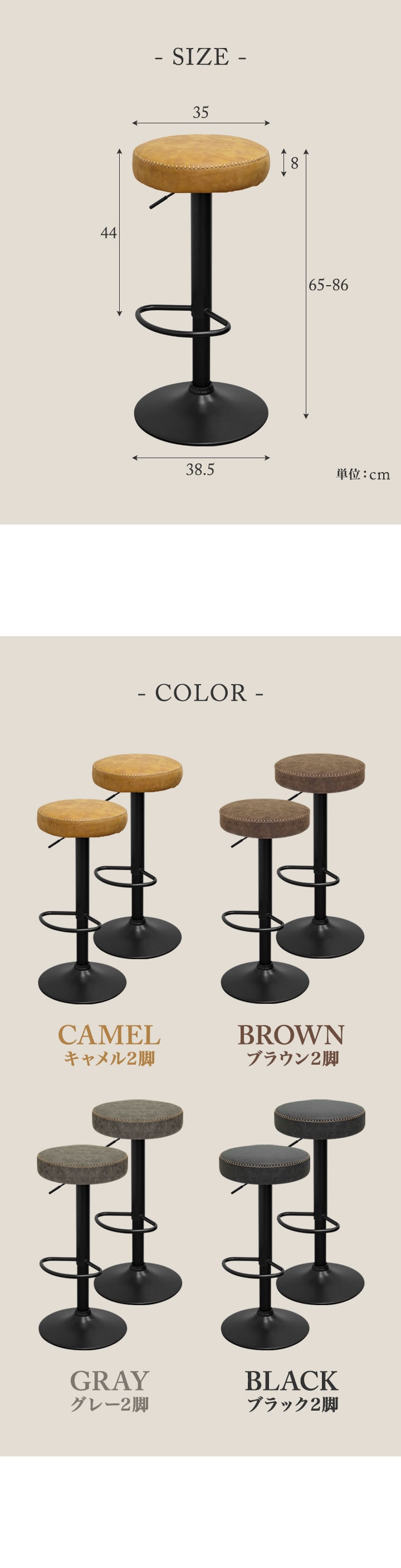 カウンターチェア バーチェア (2脚セット/キャメル/艶なし) PUレザー バースツール ハイスツール おしゃれ 椅子 スツール 丸椅子 座面高 65cm~86cm 店舗 レトロ ヴィンテージ 西海岸 回転式 昇降式 チェア カフェ風 送料無料