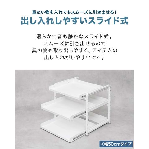 シンク下 収納 ラック 引き出し スライド スライドラック キッチン収納 高さ調整 3段 幅52.5cm 棚 調味料 鍋 フライパン 調理器具 洗面台下 キッチンラック シンク下収納ラック 収納棚 ワゴン 隙間収納 ホワイト 白 送料無料