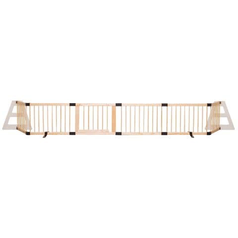 RiZKiZ ベビーフェンス (幅465cm/ドア&エンドパネル付き/補助スタンド2本入り) 高さ55cm 木製 置くだけ 自立式 補助スタンド付き 天然木 簡単設置 組み立て式 テレビガード 階段 台所 キッチン リビング パーテーション ベビーサークル 柵 安全 倒れにくい 送料無料