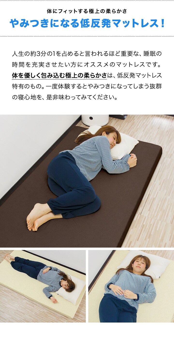 | 材質: マットレス本体:低反発ポリウレタン(密度40kg/m3) カバー:ポリエステル100% |