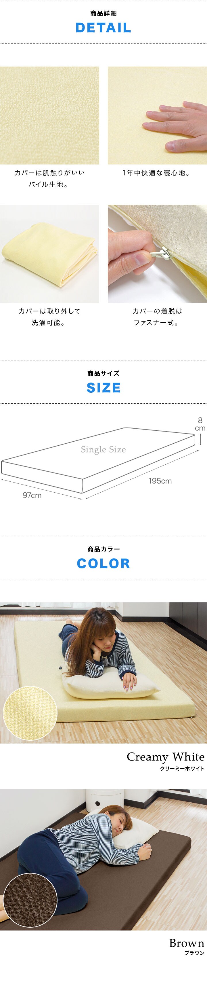| サイズ: (約)195cm×97cm×8cm シングルサイズ |