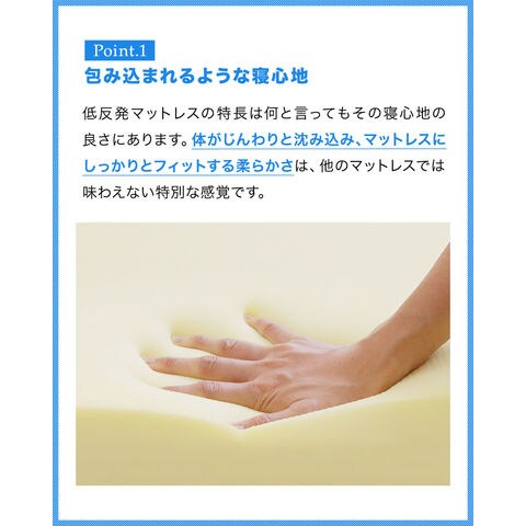 | 材質: マットレス本体:低反発ポリウレタン(密度40kg/m3) カバー:ポリエステル100% |