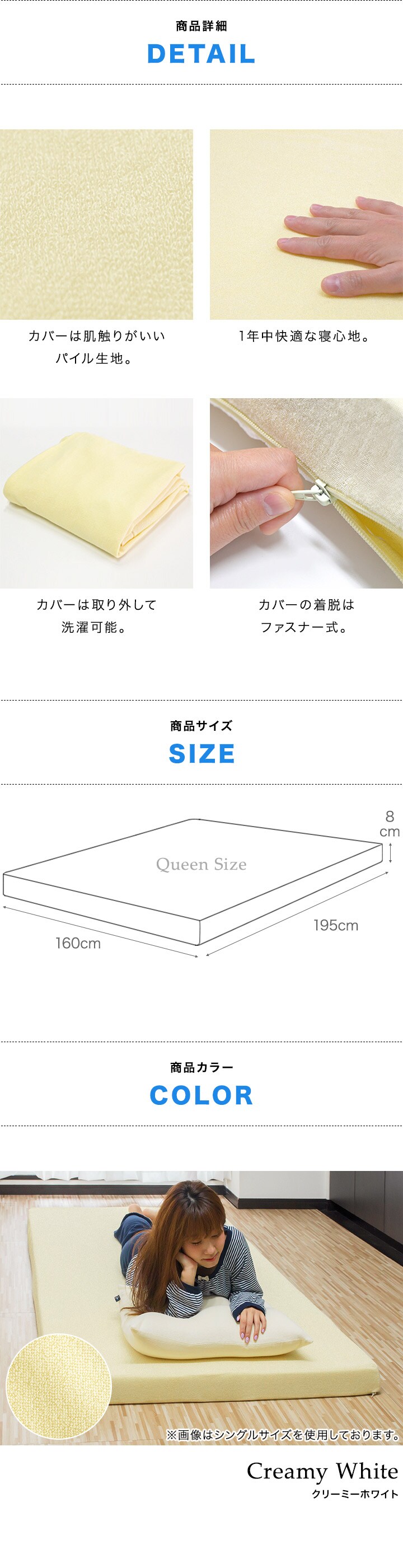 | サイズ: (約)195cm×160cm×8cm クイーンサイズ |