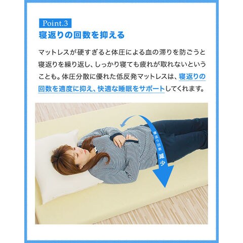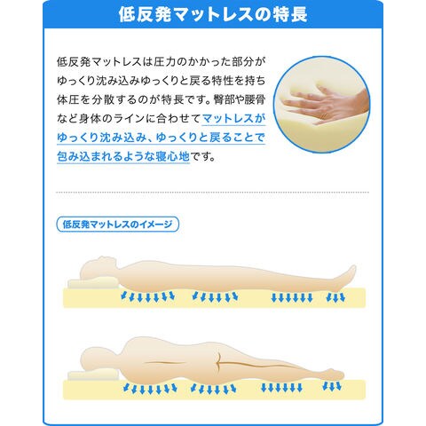 | 材質: マットレス本体:低反発ポリウレタン(密度40kg/m3) カバー:ポリエステル100% |