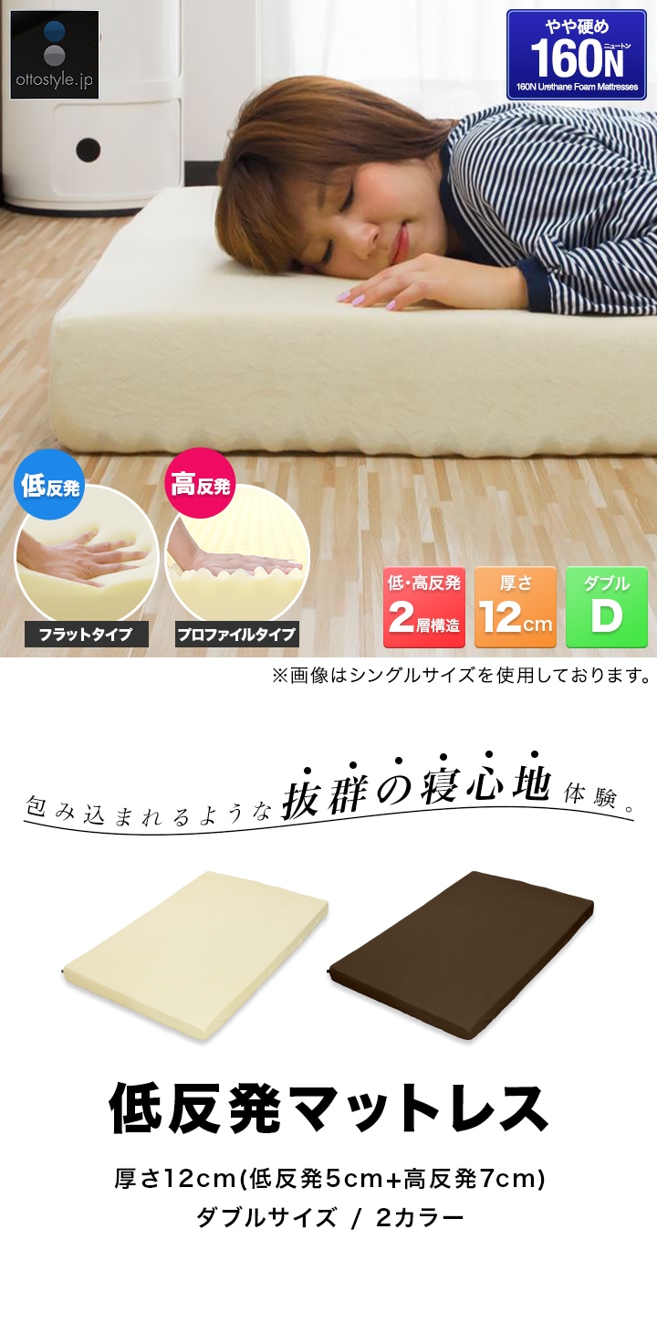 マットレス 低反発&高反発 両面 (ダブル /クリーミーホワイト) 二層 マットレス 12cm やや硬め 160N 低反発マットレス 高反発マットレス 低反発ウレタン 高反発ウレタン プロファイル 体圧分散 厚さ12cm S/SD/D 洗えるカバー マット ベッド 寝具 送料無料