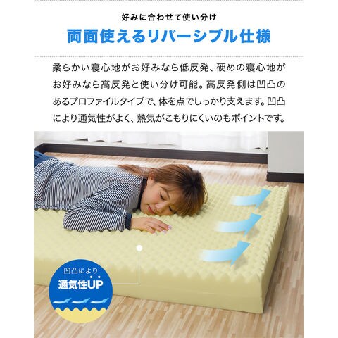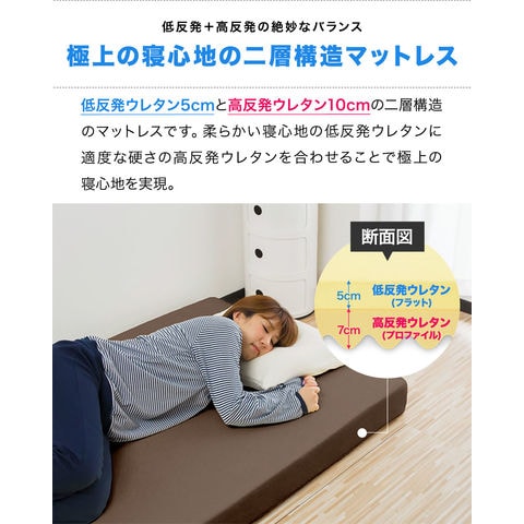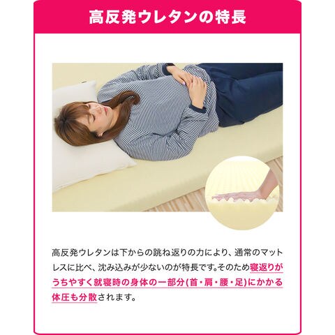マットレス本体:低反発ポリウレタン(密度45kg/m3) / 高反発ポリウレタン(密度25kg/m3)